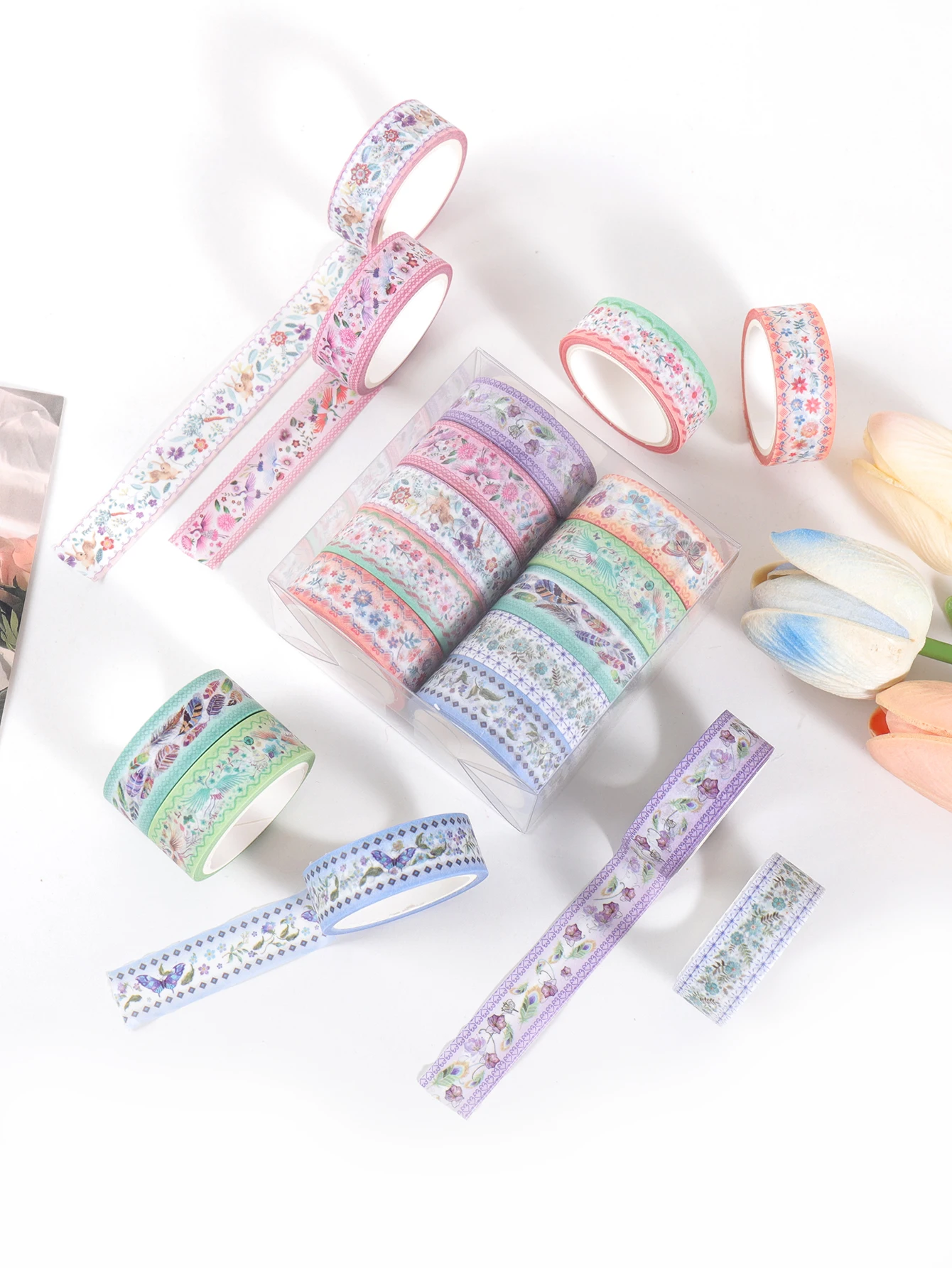 10 Rolls Fine washi tape, Creative Handmade DIY Decoration Tape with Butterfly Plant & Flower Patterns,Fashion decoration items