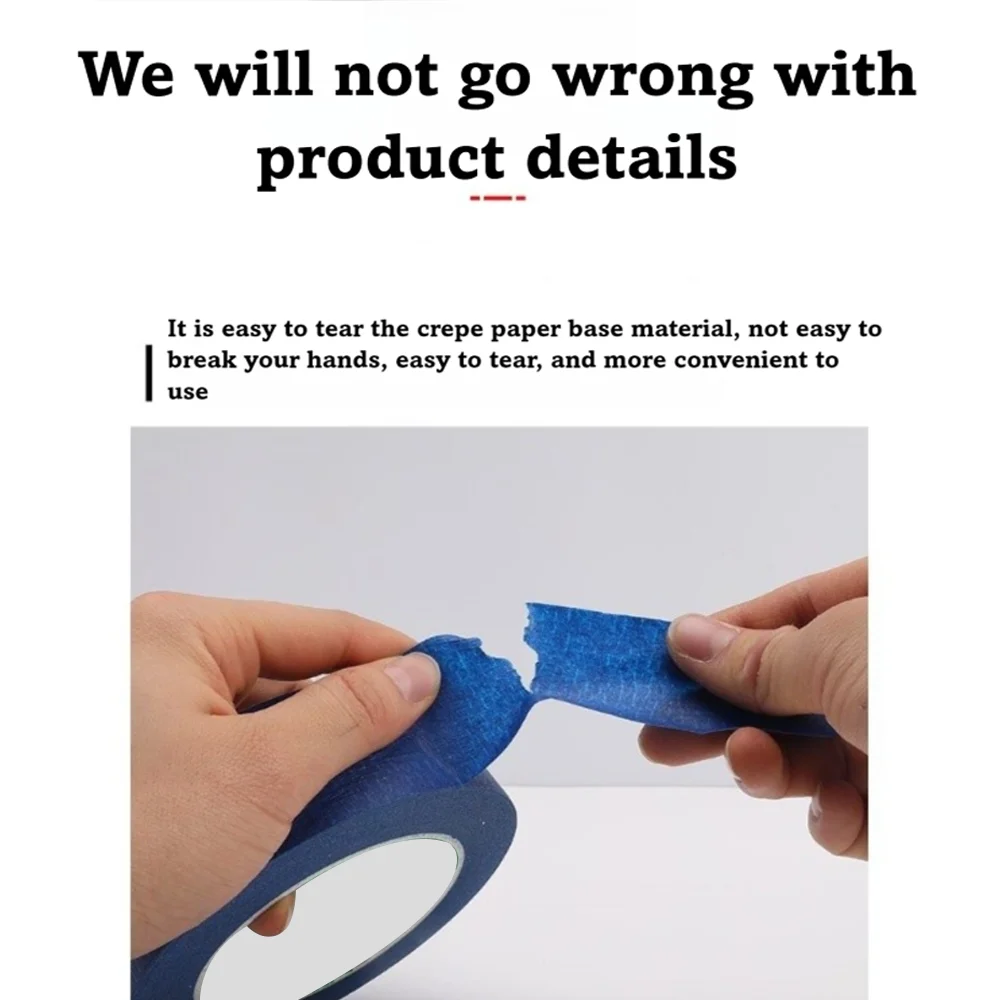 3.UV-Resistant Durability - Crafted from superior crepe paper materials, our blue tape stands strong against paint without tearing or lifting. It also withstands exposure to sunlight and moisture, making it an ideal choice for both indoor and outdoor applications.