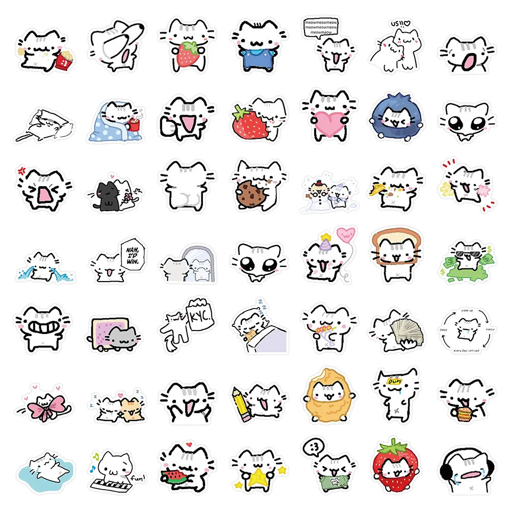 10/30/72PCS Line kitten Daily Graffiti Sticker Cute Cat Cartoon Decal For Laptop Phone Guitar Cup Skateboard Waterproof Sticker