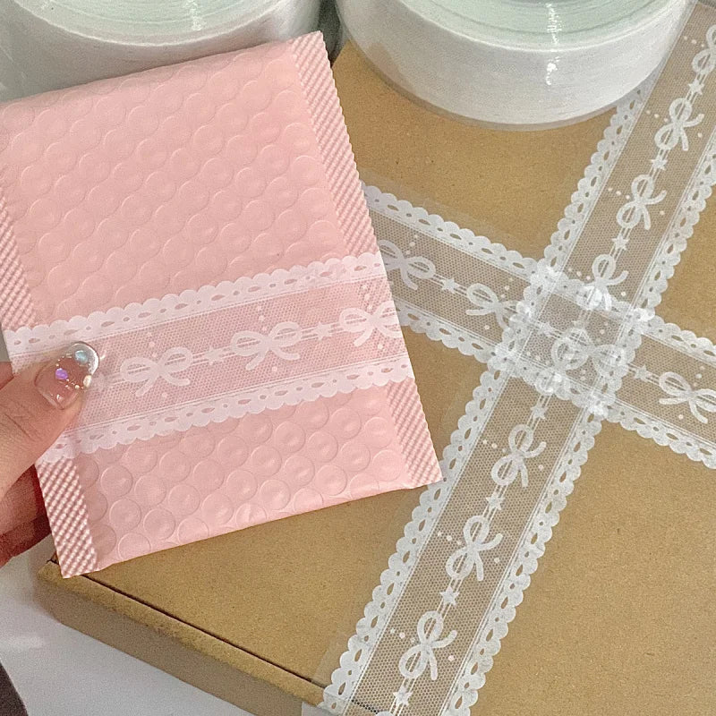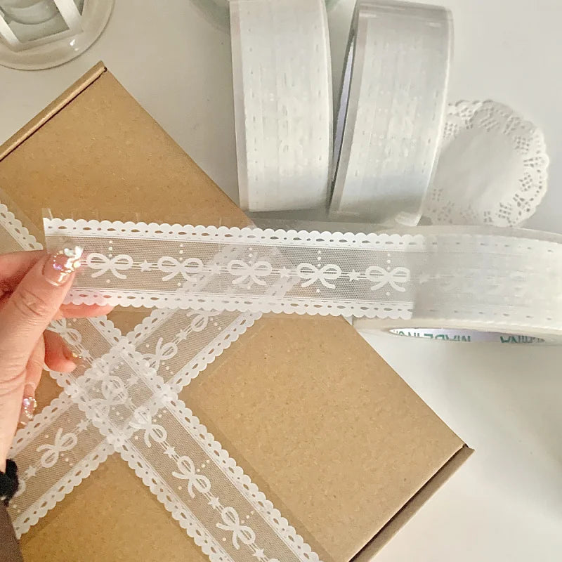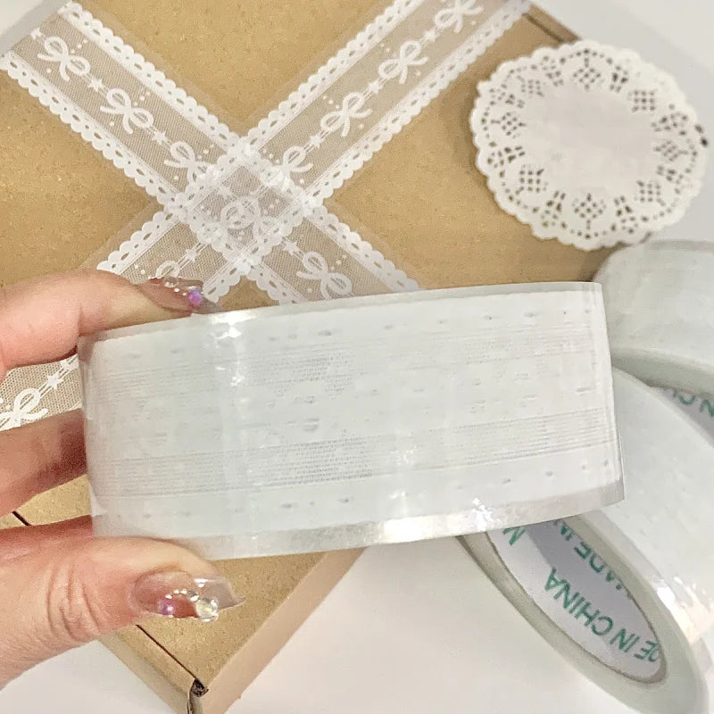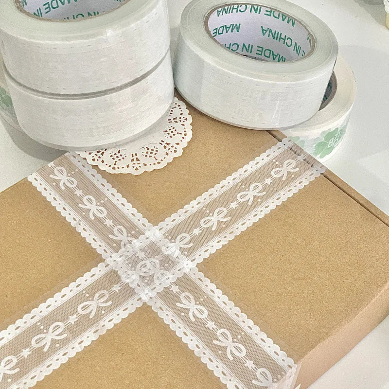 100M/Roll Bow Lace Transparent Tape,insFeng Festival Gift Box Packaging Tape,DIY Gift Decoration Material Tape
