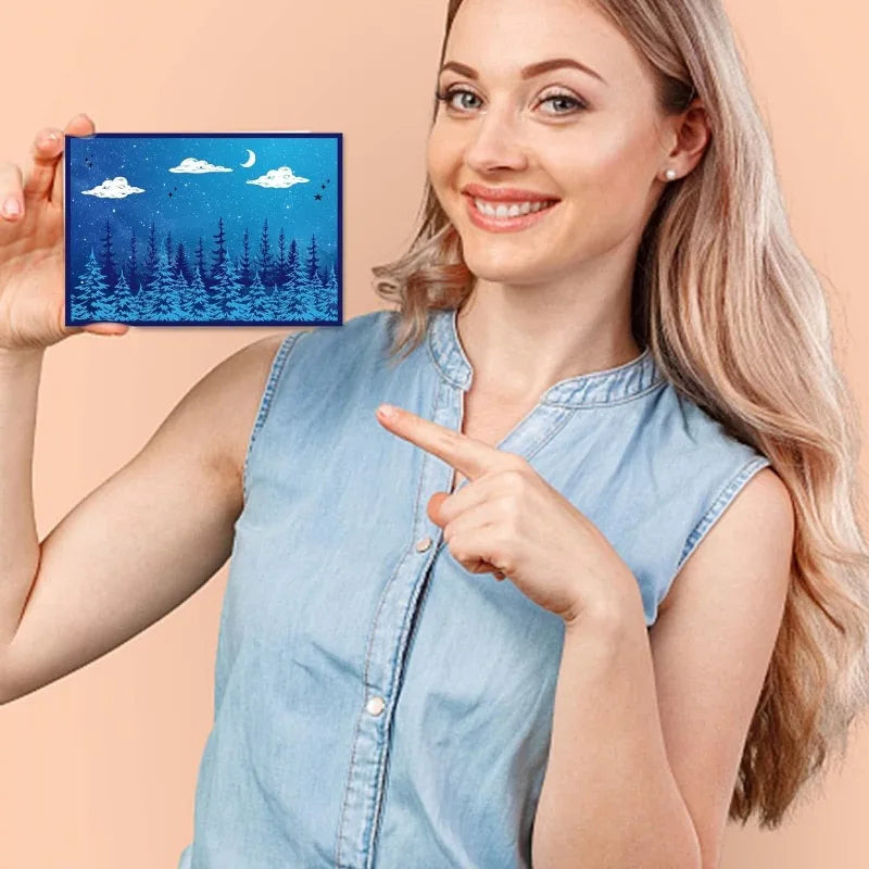 Clear Stamp for Card Making: Transparent silicone stamp with forest theme, contains forest, sun, moon, cloud, trees