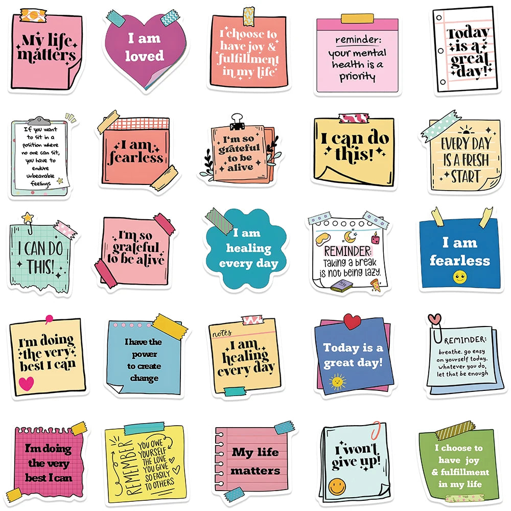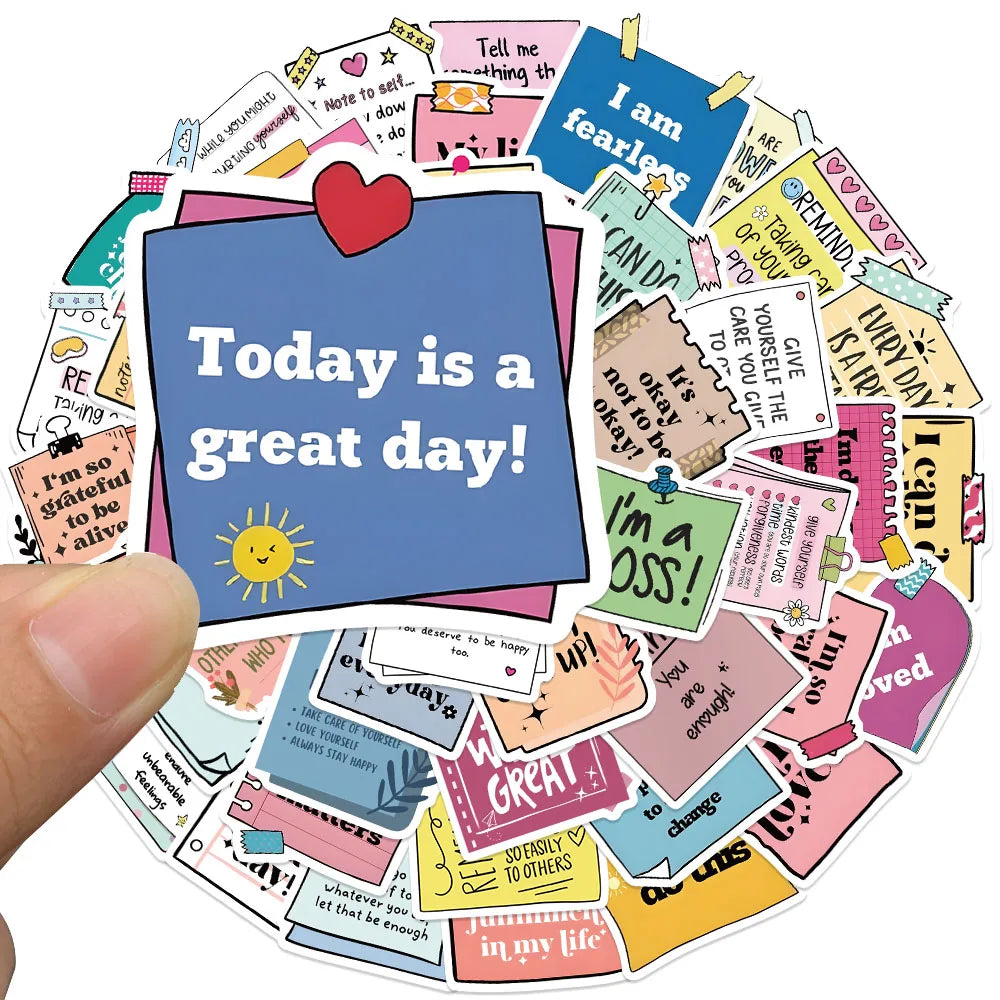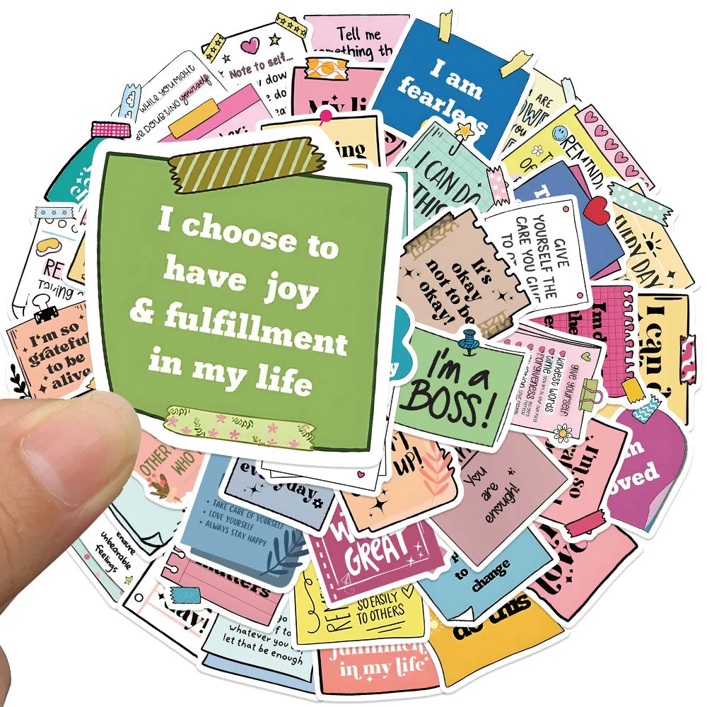 50pcs Motivational Stickers Cute Cartoon Self-affirmation Sticker For Laptop Water Bottle Luggage Notebook Phone Vinyl Decals