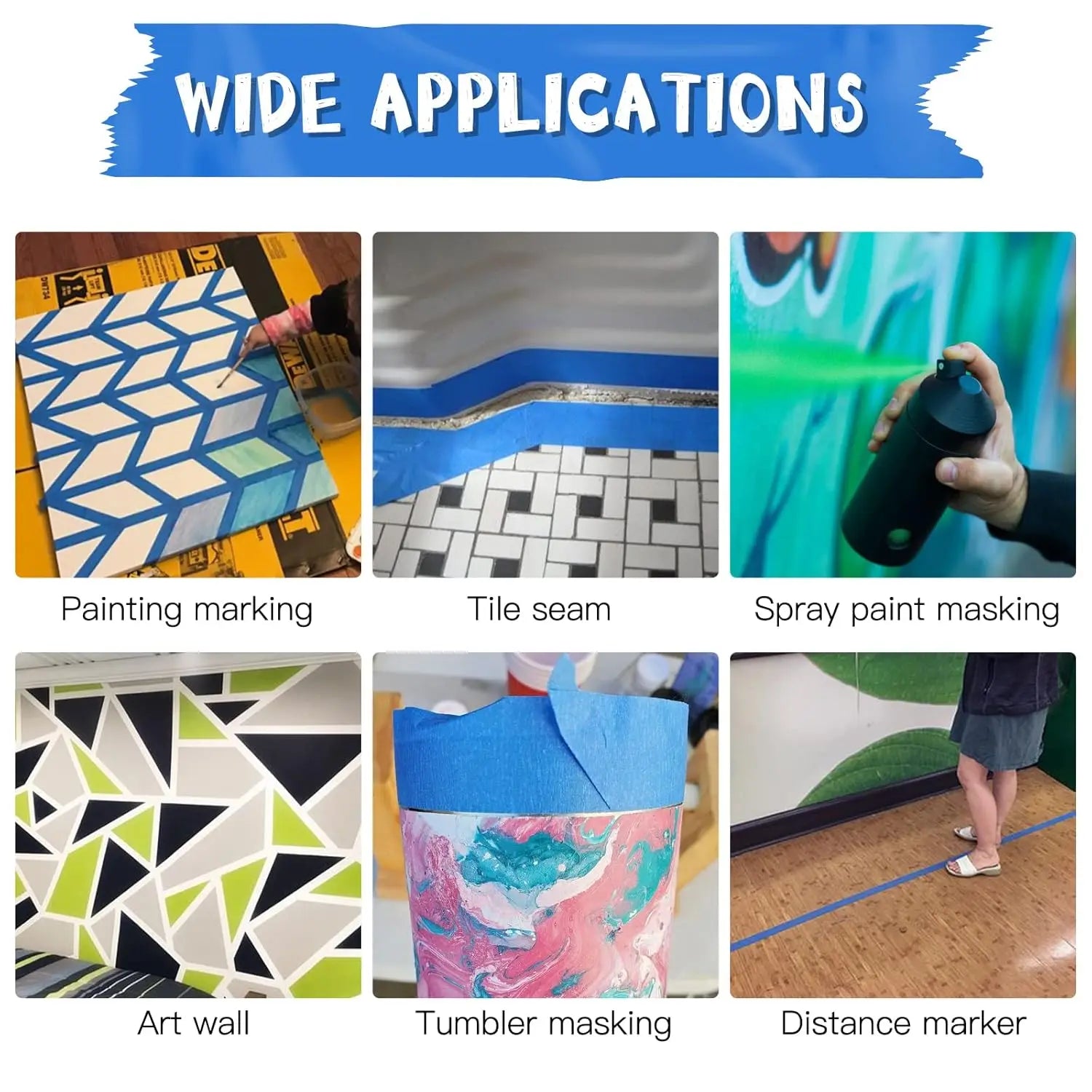 3.UV-Resistant Durability - Crafted from superior crepe paper materials, our blue tape stands strong against paint without tearing or lifting. It also withstands exposure to sunlight and moisture, making it an ideal choice for both indoor and outdoor applications.