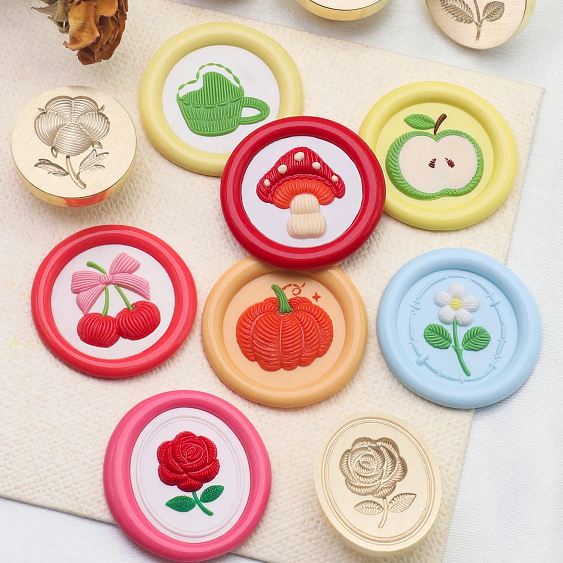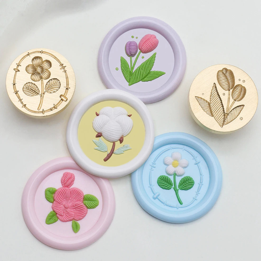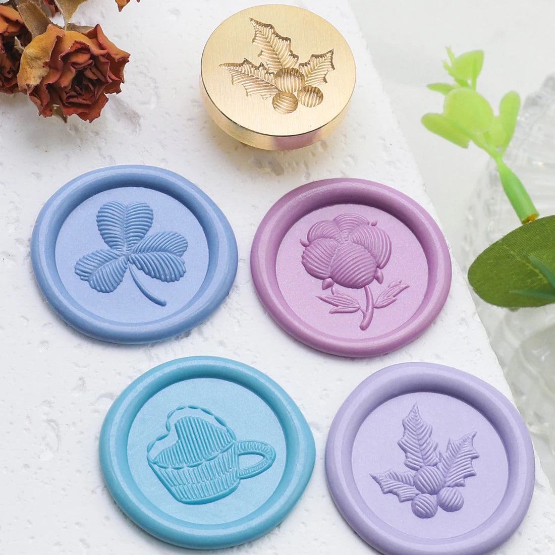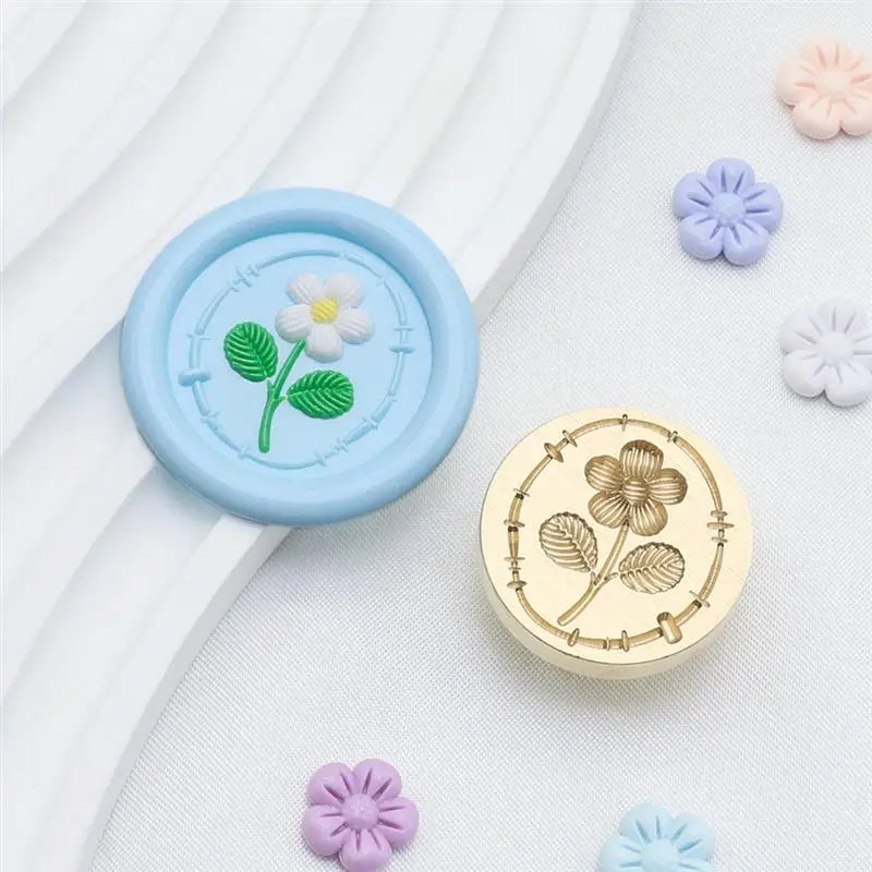 Embroidery Series Sealing Stamp Head 25mm Copper Plant Embossed Relief Stamp For DIY Cards Scrapbooking Invitation Decor