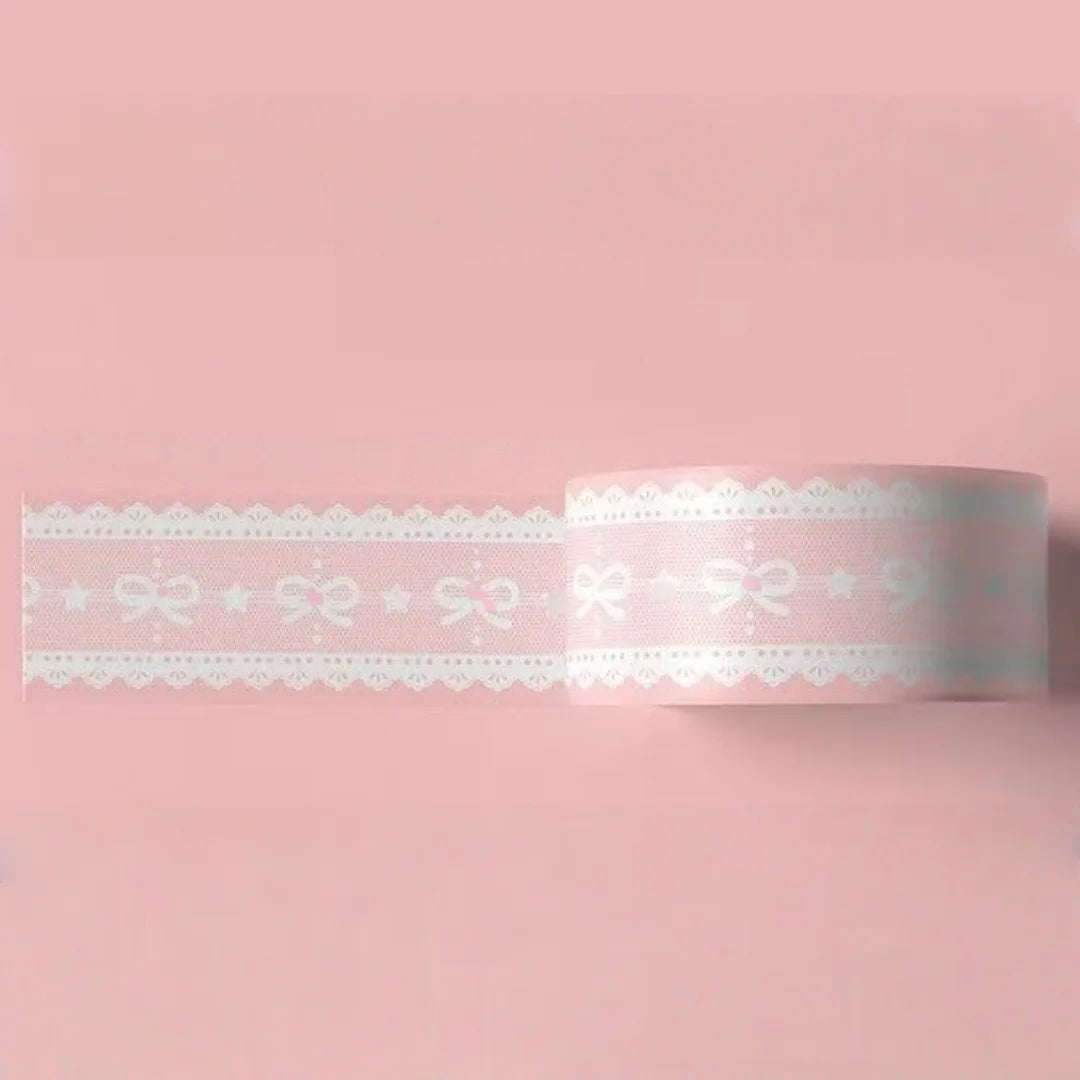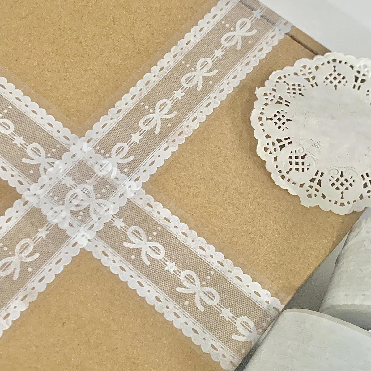 100M/Roll Bow Lace Transparent Tape,insFeng Festival Gift Box Packaging Tape,DIY Gift Decoration Material Tape